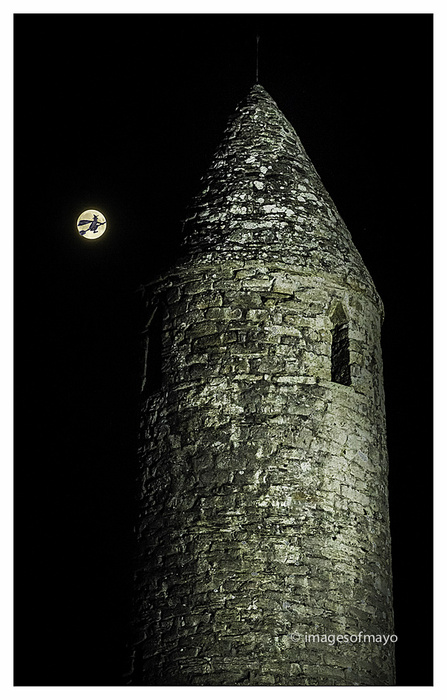 Turlough round Tower, lit with a flash with a full moon and..... whats that?