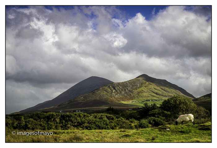 yesterday afternoon I went to Roonagh pier I only had a small tripod with me and it was just too windy and with the rain I was unable get any good pictures, but as I drove back towards Westport the sun came out for a couple of minutes, I spotted this sheep in "just the right position" in relation to Croagh Patrick and so pulled over the car and got the picture before she moved out of shot.