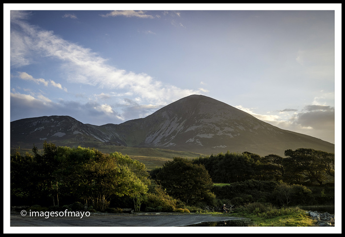 Rain and wind all day today so no photography today! This image of Croagh Patrick, taken a week ago from Murrisk Abbey was taken just as the sun was setting to the right ( outside of the picture) .
