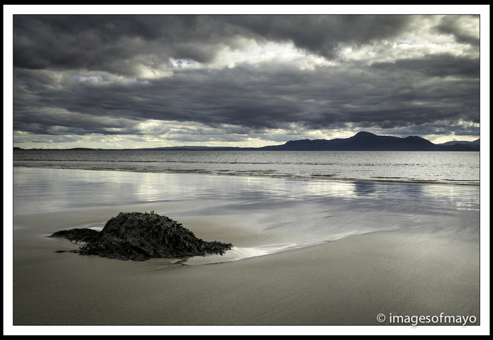 I was in Mulranny today to deliver some framed prints to the Mulranny Park Hotel (they decorate the dining room) I was in a real hurry and did not have time for photography, but it is very hard to resist the beach at Mulranny . So I "just went to have a look". The tide was out and I had time to take one picture, this is it.