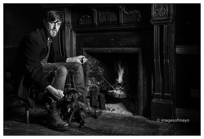 I went out again this evening with Patricia in search of a sunset . We travelled to Kiliala on our to Kilcummin. We decided to call in for a "few minutes" to visit our friends Tony and Liz who run The Old Dean Holiday Cottages in Killala. Of course the few minutes became several and eventually became a few hours and the sunset was missed. I did get this image of Tony by the lovely turf fire though!