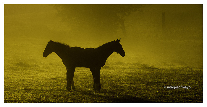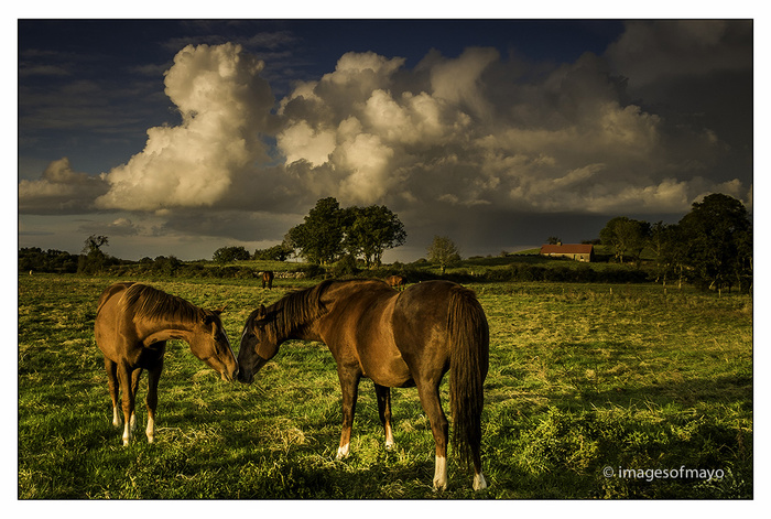 To nights picture was a bit of a "grab shot" . I am just back from a great evening at the Mayo Photographic Club I was teaching a beginners class at 6.30 and on my way there ,realising I had no picture for tonights blog, I stopped on the N5 and tried to gbet a picture of these horses. I only had a few minutes, the one on the left had approached me and realising I had no carrots he figured I was of no interest and had got bored, but the second horse was still a distance away and clearly thought I might have something for it. All the time I was trying to get myself into a position that the composition would be interesting, but just as one turned away disgusted with me the other arrived and they greeted each other for just a moment, and I had my shot!!