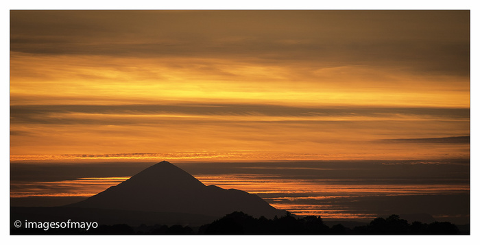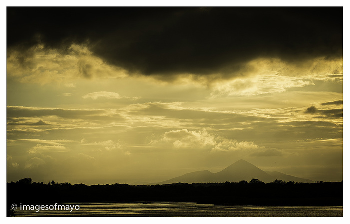 Plenty of rain today, I went over to Westport this evening and had hoped there would be some clearing that I might have seen a sunset, but it rained all evening and I did not see the sun, I took this image as the sun set close to Croagh Patrick on Sunday evening as I drove into Claremorris