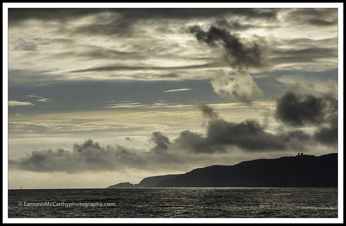 Here is another image from yesterday's boat trip in West Cork. As we sailed back into Baltimore this was the view behind the boat, the land mass is Cape Clear Island  and in the far distance on the horizon on the left hand side you can see the famous Fastnet Rock and Lighthouse.