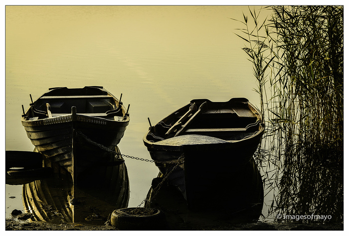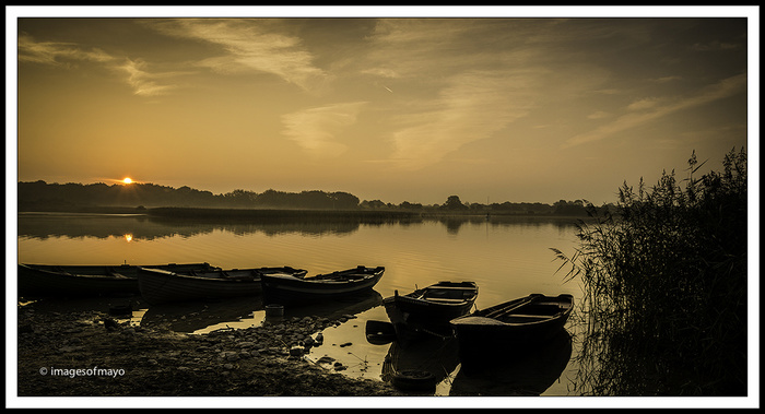 After sleeping in and missing yesterday mornings sunrise, I did not even set the alarm last night, but when I woke at 6.10am I thought I might as well see could I get the sunrise this morning. so I went to Lough Carragh near Moore hall. The sunrise itself was not very spectacular but the low sun lit the moored boats beautifully, delighted with the results of my mornings "work" I was back at home having egg and bacon at 9.15am!
