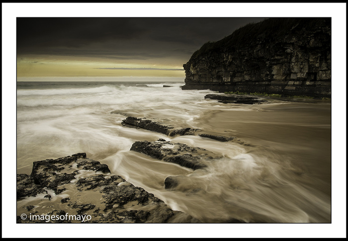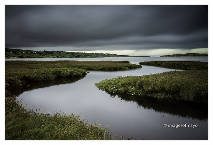 A dull grey day in Mayo today. It does not always mean no pictures though. This image was made a few days ago in Lacken bay. Despite the greyness I went for a walk along the beach to explore the area, researching the possibility of future photographic view "if the light was better" But as I walked towards the beach I saw this channel were the tide was coming in and realised ,I had a picture from the shapes, rather then from the light. I used a ND filter to give a long 30 second exposure which blurred the cloudy sky and the water.