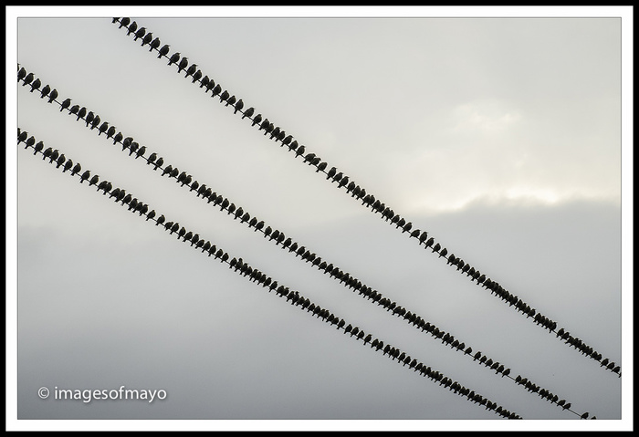 It was very dull and overcast today all day , it looked unlikely that I would find something to photograph for the blog today, but as Patricia and I were driving in the car this evening I spotted the wires above were tweeting! So I stopped , climbed over a gate into a field to get closer and took a number of images, and can I tell you they really were tweeting, the noise underneath them was incredible!