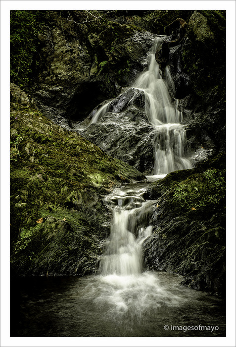 Well it finally happened! I have been keeping my head low hoping to avoid the Ice bucket Challenge, I got a text from my Ex friend Ray McGreal to tell me he had nominated me . But I wanted to keep within the spirit of this page and still promote the beauty of Mayo. And one thing we have plenty of in Mayo is water,cold water! So early this morning Patricia and I headed out to this lovely little waterfall in the Sheefry Woods that I have photographed many times.