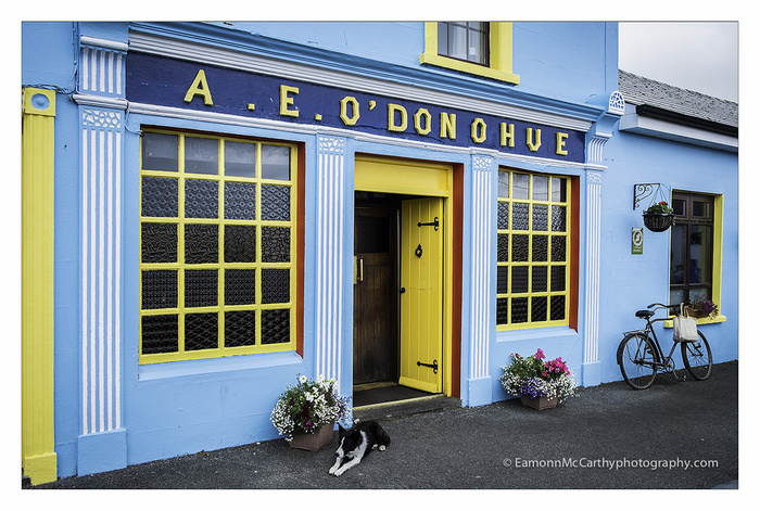 Stuck indoors again today, and as September kicks in I found myself looking over some photographs from my recent holiday in Co Clare. This is O Donoghue's pub in Fanore, I thought the colours were great, I don't know if the dog belongs at the pub or was just waiting for his master to emerge refreshed. But it was a very welcome sight after a 12k walk across the Burren and the Guinness was perfect!