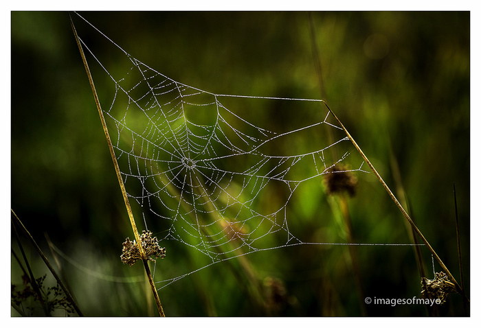 This morning was the first of those true Autumnal mornings. A sunny start with a real nip in the air, but not cold enough for frost . A perfect morning for seeing cobwebs. The cold creates the due that settles on the webs and the low sun lights them up. I am always amazed because it is clear to me that the cobwebs are there on other mornings too but we just can't see them. So I went down the bog road this morning on a "spider web hunt". They were everywhere! To see them you must look in the direction the sun is coming from, its the backlight on the water droplets that lights them up. But while you need the light shining on them you must have a dark background. there were so many that it was almost hard to choose, but then when you try and photograph you find that the direction is not quite right, or there are too many distractions in the picture and it becomes quite difficult to settle on one you like! The sunshine did not last very long this morning, about half an hour after this image was made cloud cover blocked the sun and all the webs simply vanished! I expect the spiders prefer it that way!!