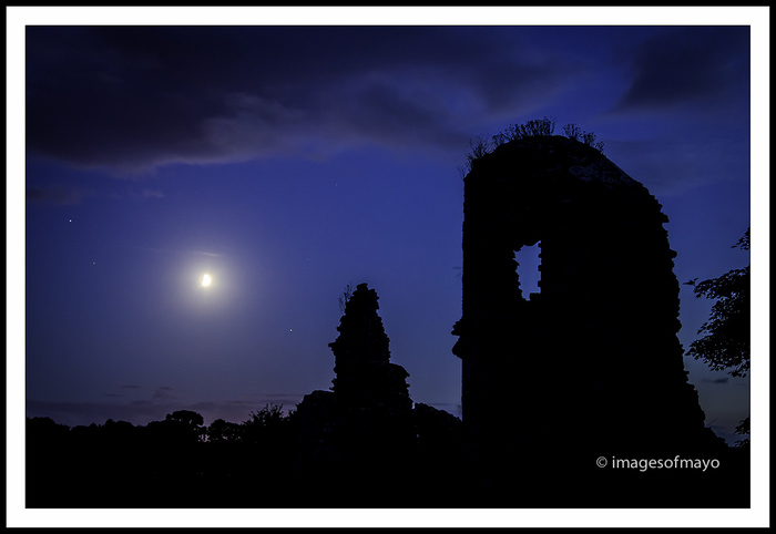 A few evenings ago we passed Ballylacken castle when I "saw" a picture , the moon was rising but there was still a little twilight in the sky. So I stopped a few metres after passing the castle put the car in reverse and went back. I would have liked to expose the moon a little better but if I did the rest of the image became too dark and I would lose the blue colour, but I still liked it!