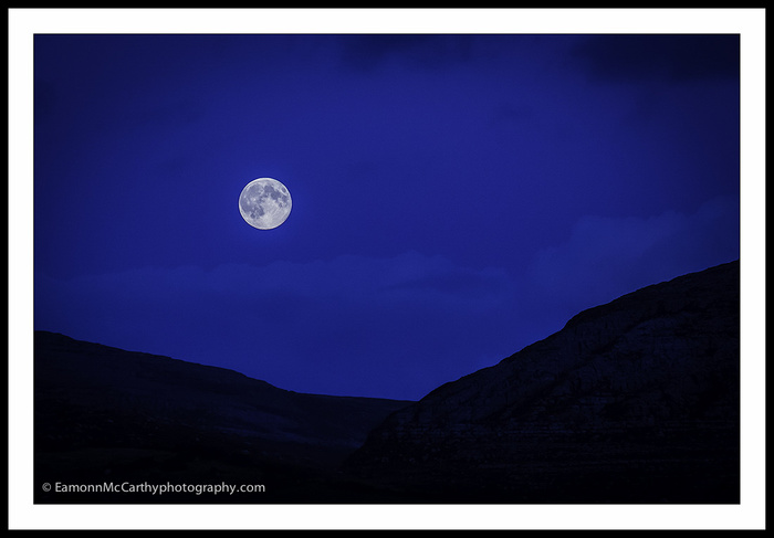 I am still in Co Clare, enjoying a few days with the family, all four grown up children and partners are here. So we went fishing in the afternoon it was such a lovely day, and I was sure we would get a lovely sunset , but ten minutes before subset time the clouds covered the sun and there was nothing to be seen. I went out a second time to check if it had changed, it had not, but as I turned to go back into the house, there was the moon rising over the Cahir Valley, so I got a picture after all! Fuji Ex1 at iso 2500 !!