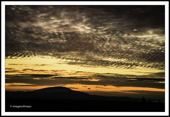 Had a busy day today but got a few minutes this evening to get out for the sunrise. I was tired having spent the afternoon taking photographs for the shrine in Knock at a National Pilgrimage, but just as I settled down for the evening I spotted the sun setting out our kitchen window, so made the short journey to the top of Slieve Cairn to see the sun disappear behind Nephin. This picture was taken apron half an hour ago!