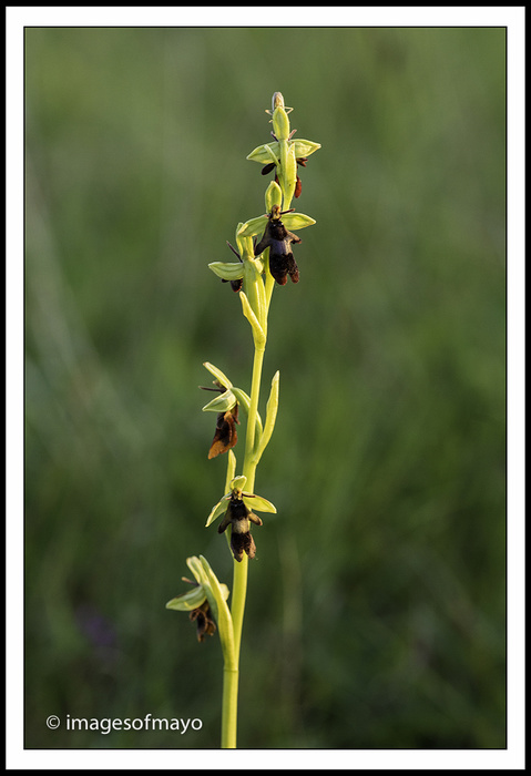 The Bee Orchid has a fond place in the McCarthy family memories. I first saw a Bee Orchid over 30 years ago, the following year I got married and we moved to live in Scotland . Children followed and before long there were four of them. Every year we would come for a family holiday back to Ireland and would usually spend a week in fan ore Co Clare. Every year the whole family would go on several Bee Orchid hunts! Of course our holiday was in July every year so we were actually a couple of weeks late for Bee Orchids . The children had never seen a Bee Orchid and so they would spread out across the fields looking for a" Bee's Bottom" as this was the only way I could describe a Bee Orchid to them, A pink flower with a Bee's bottom sticking out. every year I promised a Mars Bar to the child who would find the Bee's Bottom, in all the years I never had to pay out!!