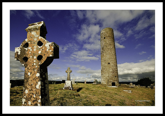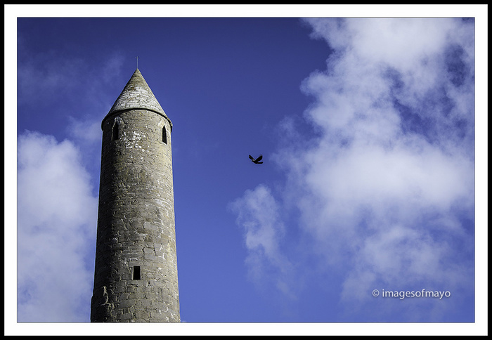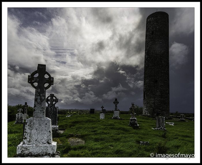 I struggled to get a picture today ! we had lots of rain, I was looking out my window this morning at 5.30 am and was secretly delighted to see such a bad morning, I would not be going out for the sunrise, back to bed for a few more hour!. It did clear up later but of course I had other things to do but on my way back from Castlebar this evening there was some lovely light and interesting clouds so instead of turning off at Bohola to come home to Kiltimagh I continued to Meelick and the round tower. I had hoped to get some interesting clouds behind the tower. Well I certainly got clouds, I had only time to take a couple of images. more as test shots then a final shot, when the grey cloud you can see on the right side of the picture decided to deposit what felt like its full loud right onto me! So I made a dash for the car, and resolved to come back nearer to sunset time, and while things looked very promising as I ate my dinner, the sky closed in completely before I left the house. When i did I walked as far as the car and decided it really would be a waste of time and I returned to the house. So this will have to do as the picture for the day!