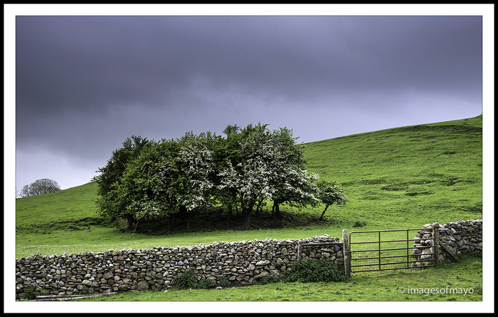 It was a lovely afternoon but as we left the house the sky darkened and the idea of a picnic seemed like not such a great idea. As we drove towards Castlebar on the N5 the sky got darker and my pre conceived sunset on Carramore strand seemed a distant possibility . The dark sky made an interesting composition for this little group of whitethorn bushes though. I suspect this is a fairy fort but I am not sure.