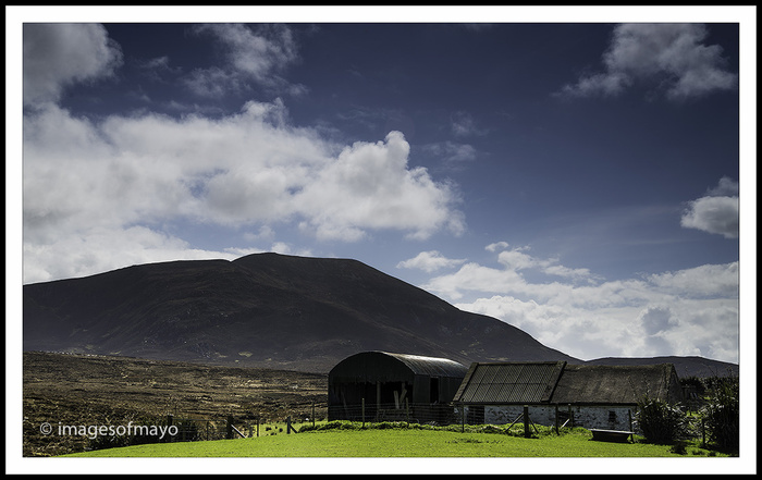 Stuck in the house today, this picture was taken on the coast road between Mulranny and Achill Island, the low buildings are now sheds but would have been the original farmhouse. What made me stop though was the lovely backlighting