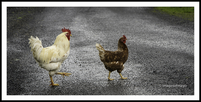I did not get out for any serious photography today, but Trish and myself were out in the car a couple of miles from home and found another couple out for Sunday afternoon. We were left with that age old question, Why DID the chicken cross the road?