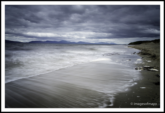 A very cloudy but dry day today in Mayo. This afternoon Patricia and myself took a drive as far as Carramore Strand near Louisburgh, the low light made it ideal for long exposures to show the movement in the water.