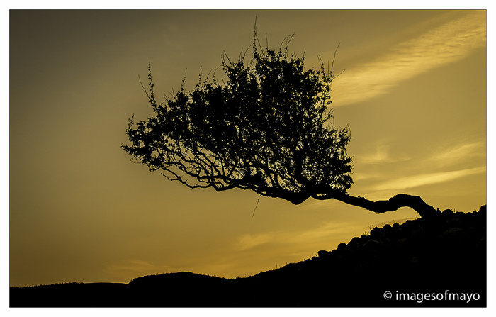 Another one of those lovely wind bent trees that are so common on the west coast of Mayo! This was taken on a beautiful calm evening with the sun setting, but the shape of the tree is testament that there are probably more windy evenings then calm ones!!