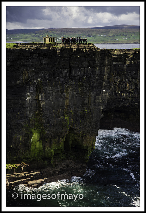 I was at Downpatrick Head, photographing Dun Briste(again!) and was sat close to the edge of the cliff just enjoying the experience, it was calm, and sunny and I was not likely to get any exciting pictures but I was enjoying the environment and contemplating how lucky I was to be alive in this wonderful place, all alone with nobody to disturb me. I don't know why but for some reason I looked up and behind me and it took my brain a couple of seconds to fully interpret what my eyes were seeing. A troop of unformed people were walking towards me, still a hundred metres away it took me a moment to realise they were only school boys, it still seemed just a little surreal. I wondered would they be brought all the way to the edge ! and decided if they were it would make a good picture, so I picked up the camera bag and tripod and moved around the headland so that I would be able to photograph them. They only stayed a few minutes before their , I am sure ,relieved teachers marched them back down the hill again. so I did not meet them to ask which school they were from or what subject they were studying. it could have been geography or history, or any other subject for that matter, but hats off to the teachers, I am sure that the location made a great classroom.