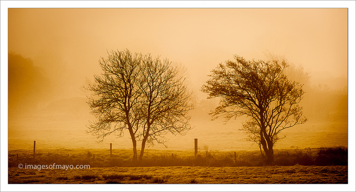 This picture was taken on a foggy morning as the sun tried to break through. fog changes how things look and in this case separates the two trees completely from their background.