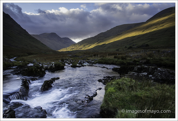Photography is all about "moments". Thats just as true of landscape photography as it is of any other field of photography. Here is another image from Monday evening at Cultrasna. In the ten minutes before this picture we had travelled through the rain watching as the sun disappeared behind the rain clouds, then for just a few minutes everything changed the sun broke through the rainbows came and went and the sky turned golden, a few minutes later it was all over and we were heading home, almost wondering "did that really happen" !!