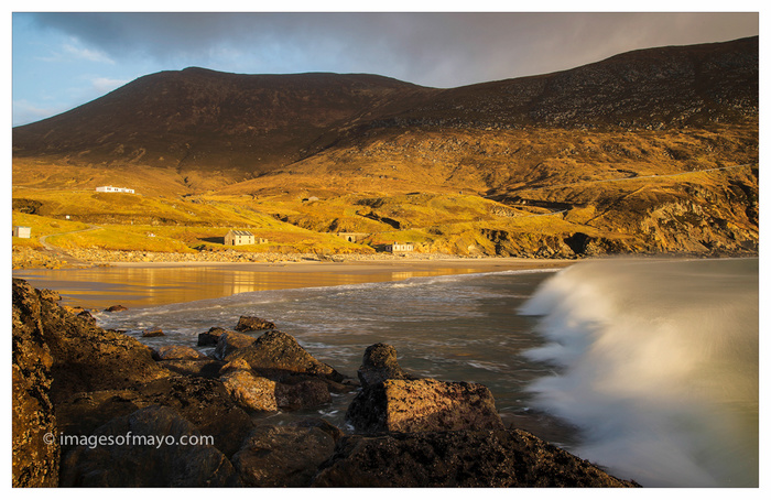 Photography is all about light, and you will notice if you look through my pictures that my favourite technique is to shoot into the light, even after the sun has gone in the evening and before it rises in the morning you can still shoot into the light for dramatic results. But sometimes low direct light can be just as dramatic and really hard to beat, like this early golden winter light shortly after sunrise on Keem Strand, you can also "see" the cold winter wind blowing the tops off the waves! And LOOK I had it all to myself!!!!