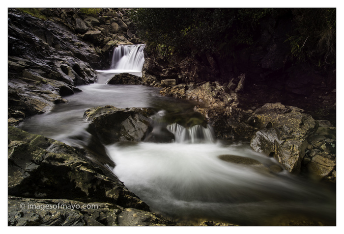 Yesterday I spoke about the wonderful light and day we had in Mayo. Today was quite different. It is raining as I right, but during the day there was not too much rain, but there was no sun either. I was traveling between Westport and Doolough along the Shefrey Pass, despite the lack of sunshine it was still beautiful, but the lack of sun made it ideal for photographing this little stream.