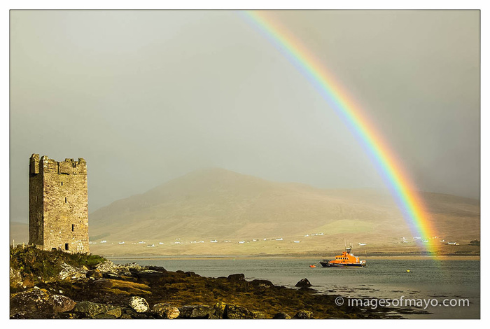 I was back on Achill again today, still working on the geology project, it was my third trip back to one site! This is because on the two previous occasions the weather forced me to abandon. The weather on Achill can be so changeable, and the site at Lough Accorrymore is very exposed , at times it was even too windy for the tripod. Achill was lovely today, the forecast was for sunshine and showers. well I saw plenty of showers, and they seemed to come so quick and were very heavy. But I also saw sunshine, so i got the job done!! The great thing about sunshine and showers together though is that you might also see rainbows. I saw this one developing as I began the drive home, as I drove along by Cloughmore I could see the rainbow in the distance and hoped it might be over the castle. As I came around the corner, there it was, I worked quickly of course and got a couple of shots off before it disappeared just as quickly as it had appeared in the first place