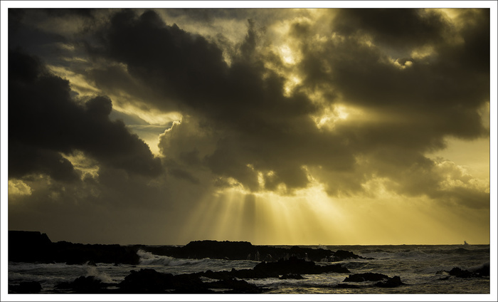 Today I was on Claggagh beach on Achill Island. I was photographing rocks and rock formations for a geology project. While I was there it was beautiful, very windy and the light kept changing between shots as the wind blew the clouds across the sun. So the camera exposures kept changing, this is not usually a problem but for many of the pictures I needed to take two almost identical . One picture could be of a feature in a rock, but the second picture would be the same but with an object added to give the rock scale, so for example for a small feature I might add a €2 coin but I wanted the two pictures to have the same exposure, the clouds were racing across the sky so fast that I did not always succeed, and so would have to repeat the process. On one occasion I was photographing a particularly interesting piece of rock and I had to another rock climb to get a good view of it. It took me several minutes to get the tripod into a secure position and when everything was ready to take the shot, I looked over my shoulder to see where the sun was. This is what I saw ! I was left with no alternative but to photograph the clouds and recompose the rock shot again afterwards!