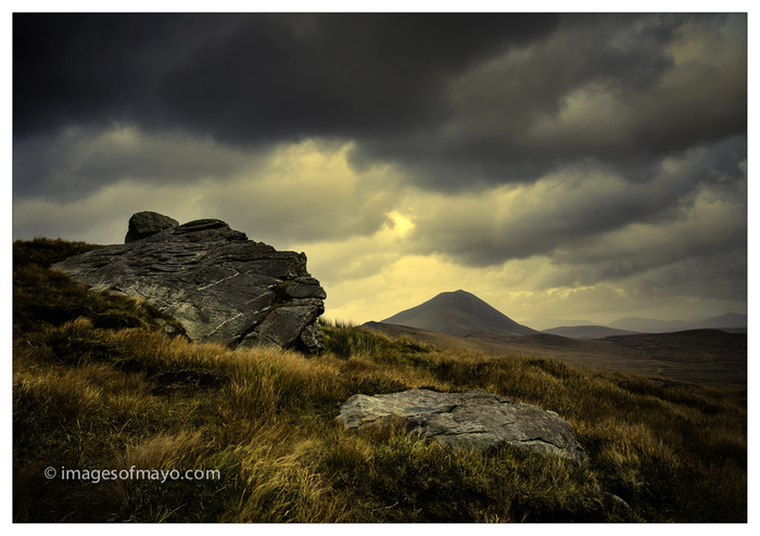 I feel very privileged to live in County Mayo. there are things to photograph every where. Sometimes you can be spoilt for choice! I was photographing this rock on Achill Island a couple of days ago when I took a moment to look around me. I was stood on my own , apart from a few sheep, some distance away. I just thought " WOW, how come I'm the only person seeing this" So I made three images, one of the scene in front of me, and one to my right, and one to my left. This is the one in front, tomorrow I will share one of the other two.
