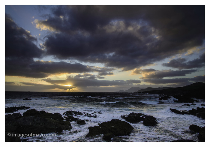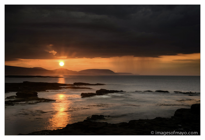 We had a glorious day in Mayo today, it really did not feel like late September. I spent the day in the Ballycastle area photographing old farm buildings as part of a commission . But in the evening just before sunset I got down to the beach at Downpatrick Head. When I arrived it did not look very promising and being tired from the day, I nearly went home. But I am glad I made the decision to stay, because just as the sun set , it dropped from behind the clouds that were hiding it for the previous half an hour.
