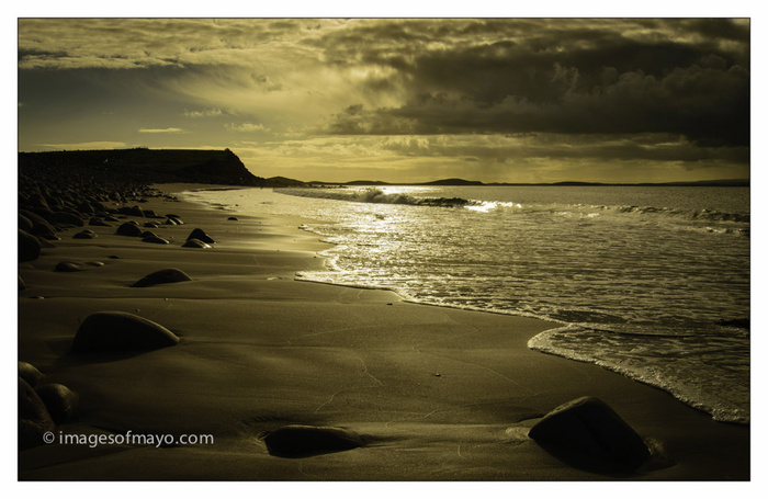 I only had a few minutes on Mulranny strand today before the rain started, and when it did it rained all day. but the few minutes I got was at just the right time.