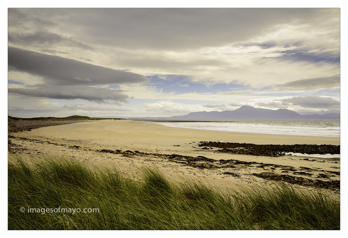 Mayo is such a magic county, with lots of unspoilt places.this strand in Mulranny is one of them. Its a bit of a secret really, most people think of Mulranny Strand as being the beach in front of the Park Hotel. But this beach is not seen from the road, infact you have to drive across the golf course to find it. The golf course in Mulranny is itself quaint, as the greens all have fences around them to keep the sheep off them. And yes driving a car ( AS opposed to a golf ball!)across a golf course can be hazardous . I have never been hit by a golf ball but there are "viewing areas" for car drivers to check there is nobody about to fire a ball at you!
