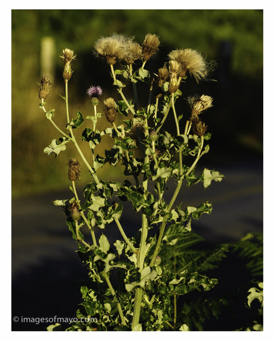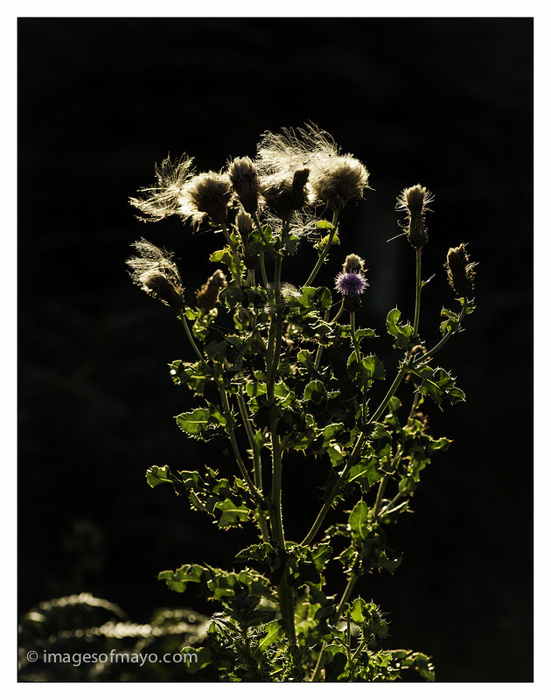 Photography is as everybody knows, all about the light. I am old enough to remember using film, and the instructions on the box advised putting the sun behind the photographer, usually over your shoulder, shining on the subject in front of you. This worked well for the film makers as it was the easiest way to take photos , and still is, if you are using an automatic camera. But in terms of being creative, the sun behind the photographer can be very boring. It is of course more difficult to shoot into the light, but with a little care can produce really exciting results. I went out this evening in the low evening light and found this thistle, being lit by the sun almost directly behind it. There are two issues the photographer has to do in this situation, the first is to figure out the correct exposure because the camera will be fooled completely by this situation. But a good start would be to put your camera in aperture priority underexpose by at least 1.5 stops. The second issue is to avoid the sun coming in the lens or causing flare. I did this by holding a piece of card that threw a shadow across the lens.