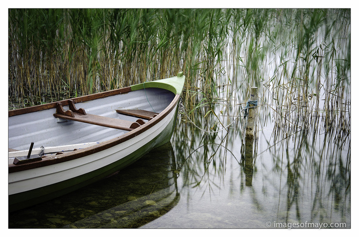 I am glad to report we had rain in Mayo today!! First time for several weeks. I did not get out with the camera, so here is another picture from yesterday morning. This picture was taken at Castlebourke on the shores of Lough Carra. yesterday was a very bright hazy day and the sky was just overbright with no detail in it all. I remembered a good friend from many years ago called Keith who was a great Black and White photographer from the "Western Valley Camera Club in South Wales where I was a member for a number of years. Keith would always say, " If there's nothing interesting in the sky, cut it out "! Well there was nothing only a white sky, so I composed without it. The light was nice and soft and the air very still, but the reeds were still swaying slightly. The boat was resting on the bottom so was not moving so I decided to try a long exposure to get a feeling of movement from the reeds. This is a thirty second exposure and even at that the reeds don't seem to have moved too much.