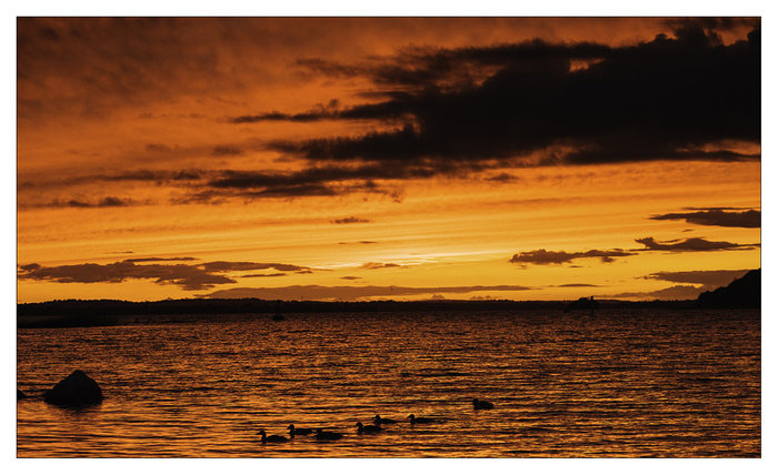 I am still in Athlone and did not see the sun at all today! So here is another from last nights sunset on Lough Ree. While photographing the sunset I did not see the ducks swim right passed and in front of me until I took my eye away from the camera and there they were just in front of me. I quickly changed the lens and adusted the iso and the aperature to give me a fast enough shutter speed so that the ducks were not just a blur on the water. the camera was on a tripod and I was not able to adjust it quickly enough to improve the composition, I would have preferred to have shot from a much lower angle, I did try and encourage the ducks to swim back and do it again but they ignored my flapping hands and just exited left!
