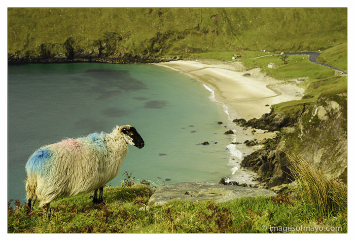 Back home from our visit to Athlone, the weather today was pretty awful, so I did not get any pictures. And the evening does not look like it might produce a sunset so I have given myself the night off and will open a bottle of Malbec instead!. So I delved deep into the archives for a picture to post this evening and found this picture from 2010 that has never been posted. It looks like this sheep is enjoying the view of Keem Strand on Achill!