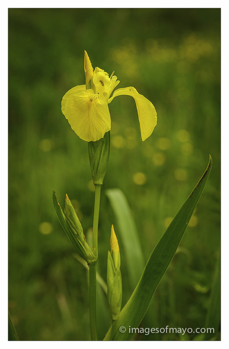 For a period this evening it looked like there was going to be some lovely light and maybe even a sunset. But just when I was ready to go out the sun was completely hidden as the clouds closed like a curtain in front of the sun. I went out anyway , down to the bog just down the road from the house. The overcast sky, while hiding the sun, created ideal shadowless light for a little flower photography. This is a Yellow Flag Iris that grows in wet places. we have plenty of those in Mayo and at the moment they can be found in abundance, but if the warm weather continues they wont last much longer.