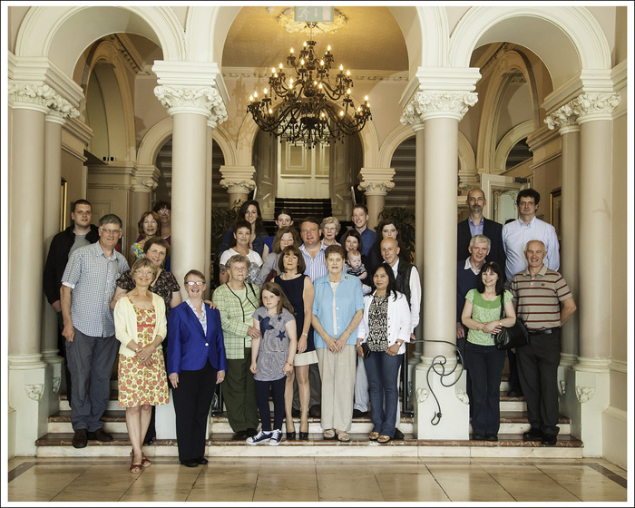 In this picture I was using two flashguns, off camera, to provide the main light, I was bouncing the flash off the ceiling to soften the light and reduce shadows. As you can see the ceilings were very high and because the group is so wide the flash guns were probably thirty feet back, so I put the iso up to 3200 !! this meant the flash provided plenty of light and also the camera was able to capture the ambient light resulting in a lovely bright picture. I did worry about how the quality would be effected by the high iso, but I printed 10x8 enlargements today and they were lovely.