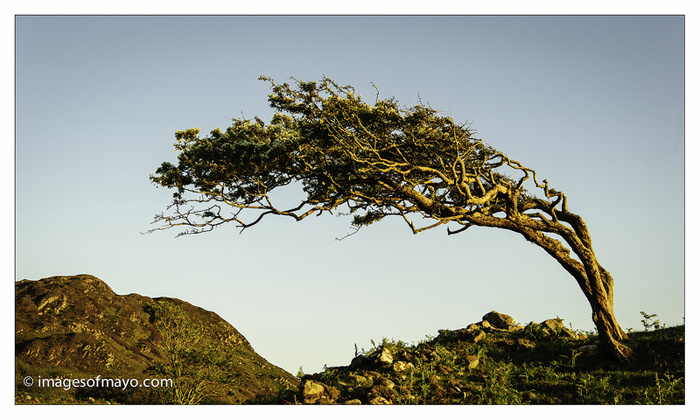 Sticking with the Hawthorn tree for another day. The flowers are not as abundant on this one. Taken on a lovely calm and sunny evening, the shape of the tree is evidence that it was not a typical West of Ireland evening!!