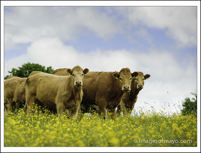 I did not do any "serious" work with the camera today, but I passed these cattle in a field just outside Kiltimagh and thought they looked good in the buttercup coloured field, so I turned the car and went back.