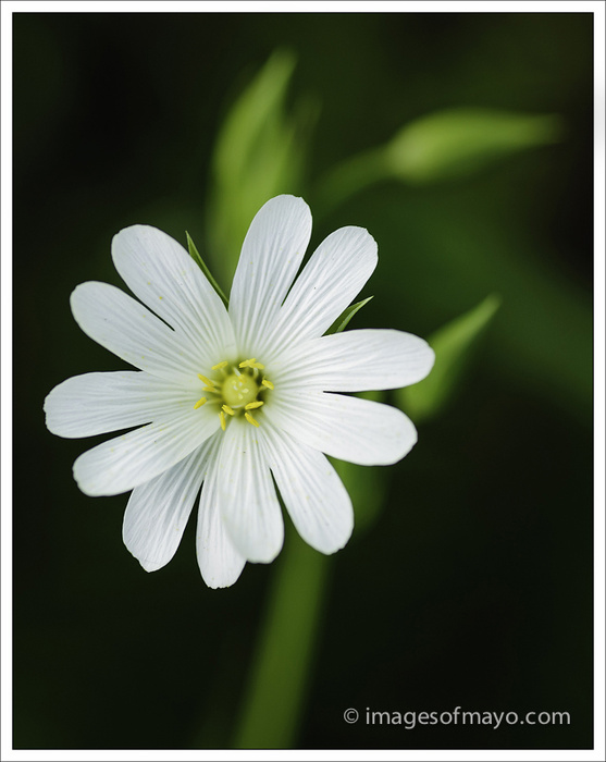 Here is a picture of a" Greater Stitchwort" I am always fascinated by the wonderful wild flowers that can be found all around us. This little plant is quite insignificant, unless you stop to admire it you may hardly notice it, as it "does its thing" in the hedgerows . The flower itself is very small, despite being the "Greater " the flower is only 20-30mm across. This particular one is a little special though because it has six instead of the usual five petals, maybe thats why I noticed it and stopped to take its picture. And yes there are only six petals, if you look carefully you will notice that the petals are deeply divided so that each petal looks like two!