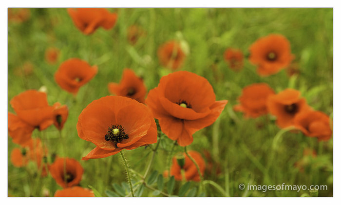 Just back from County Wexford, spent much of the day travelling. Tonights picture is from Co Carlow! In a little village called Ballon on the trip down I had spotted a field full of poppies. A sight I remember seeing as a child but had not seen in years and would certainly never see in Mayo. So on the way back today I had put it in the SAT NAV as a place to stop and was hoping for a little sunshine. Unfortunately I did not get the sunshine and the wind was also strong which made it difficult, but I still could not pass them by.