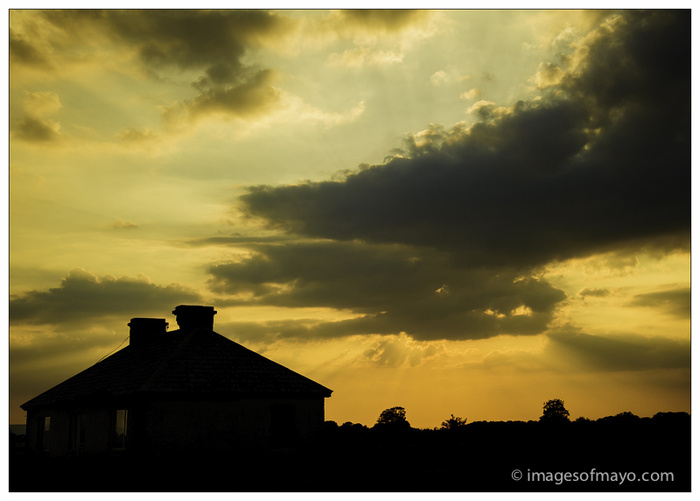 In the afternoon I was photographing Old farm buildings in the Holymount area. As I headed for home , there was a fantastic sky, but it needed something in the foreground to make a picture I passed this deserted cottage , and thought "that'll do!"