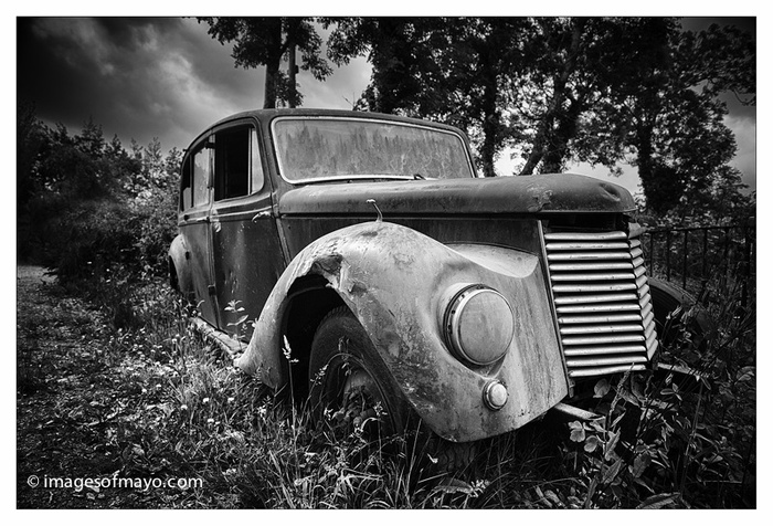 Still in Wexford. Today we visited Hook Head,on the way there we spotted this old car. I thought it would suit the black and white "treatment"
