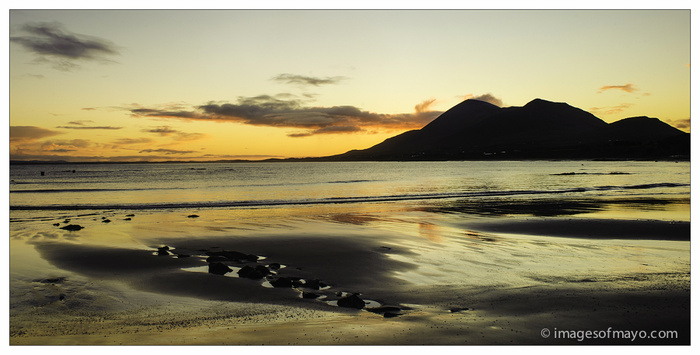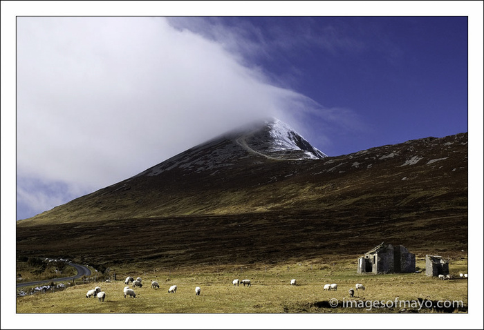 Good Morning and Happy St Patricks Day, especially if you are away from home, no doubt you will play some part in turning the world green for the day. As I write this having got up early to photograph the "St Patricks Day Sunrise" it occurs to me that for many of you St Patricks Day was yesterday ! I did get up early to photograph the sunrise, but the rain that was forecast for the afternoon seems to have arrived early, and there was no sign of the sun, so I came home and thought I would post an image of Croagh Patrick, in honour of the Saint. I have so many images of Croagh Patrick that my son Barry at one point suggested I should change the name of my website from "images of Mayo" to Images of Croagh Patrick"! Anyway I decided to post this one which was taken several years ago and is still one of my favourites.