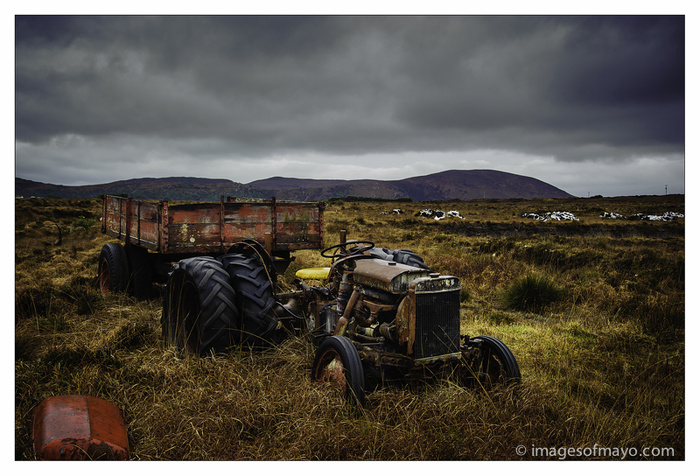 I took this image last week on Achill Island. I was disappointed in the weather as it was very dull and I did not expect to get any photographs, however i spotted this tractor which looked like it was deserted in the middle of the bog. I suspect it has done a lot of work in its time, but judging by the fact that the engine cover is lying in the bog beside it it looks like its days as a workhorse might be over.
