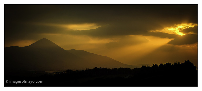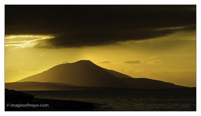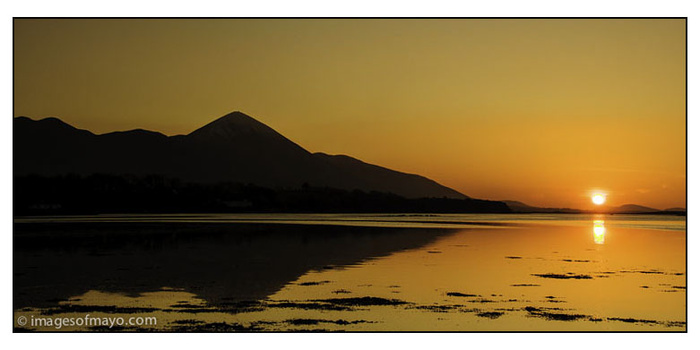 I had hoped to photograph a sunset this evening, after a lovely afternoon things were looking promising until about twenty minutes before sunset when the sun disappeared behind hazy cloud. So here is a sunset taken near Croagh Patrick two years ago !